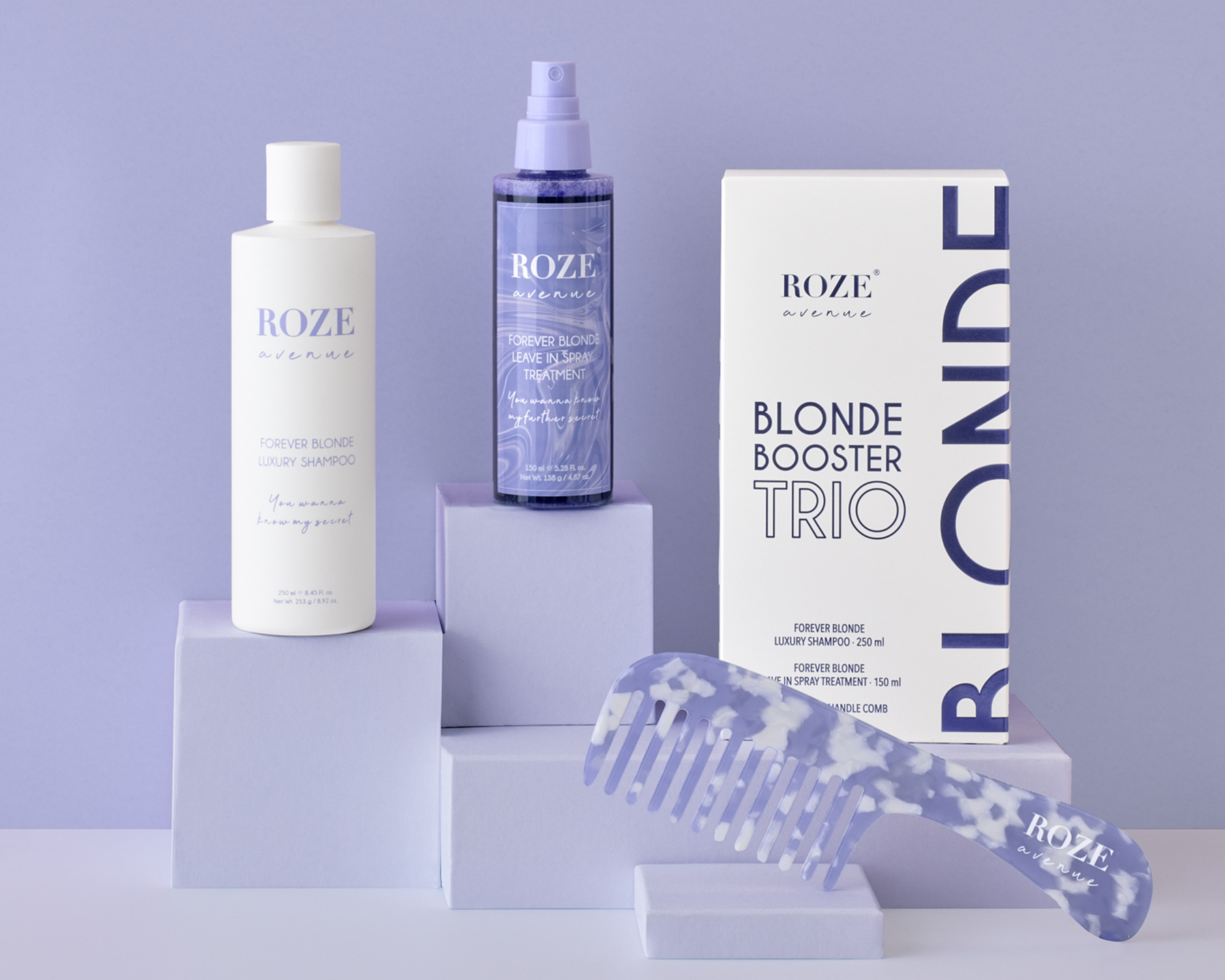 Inbegrepen is een grove kam, perfect voor het verdelen van de Forever Blonde Leave In Spray Treatment of voor elke andere gelegenheid waar je een betrouwbare kam nodig hebt. Verhef je blonde ervaring met de Blonde Booster Trio en onthul het geheim van stralend, goed onderhouden haar.